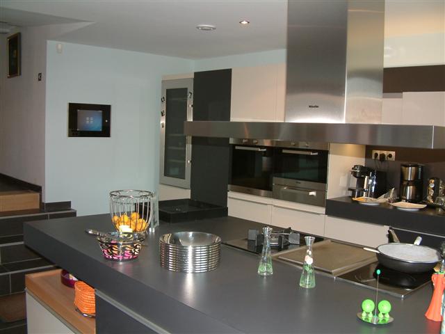 Dieses Haus wurde global im Sinn einer Weiterentwicklung ausgelegt, und um von mehreren Schnittstellen aus gesteuert zu werden. So können die Beleuchtung, die Bodenheizung, die Kameras und die anderen elektrischen Elemente von innen, aber auch von außen über einen PC oder ein mit dem Internet verbundenes Handy gesteuert werden.